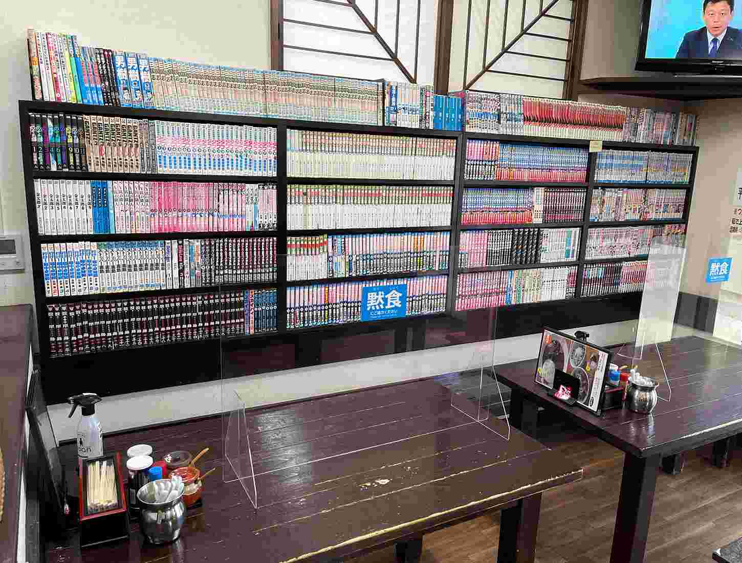 読みたいマンガがある場合は、なるべくその近くの席にお座りいただき、マンガの出し入れの際、その近辺にお座りの飲食中のお客様がいらっしゃいましたら、お声がけいただく等、ご配慮のほど、よろしくお願い申し上げます。